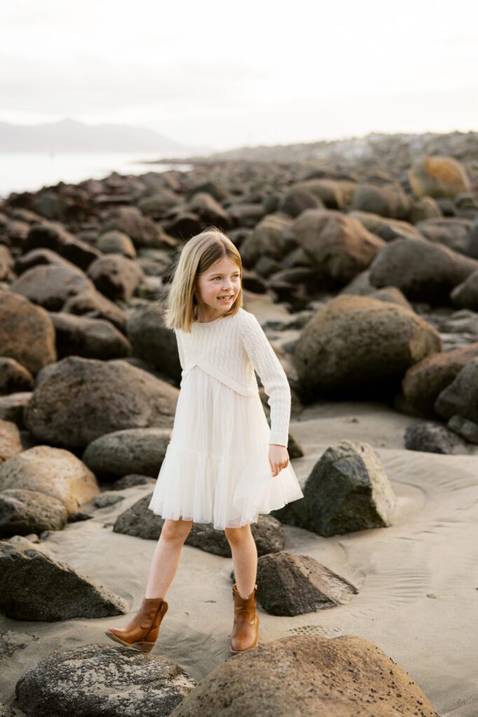 I’ll never quit this spot. The Morro Bay rock is special to a lot of people, even folks who are vacationing here. I have photos and paintings of it all around my house. So it’s always a welcomed spot when families and couples request it. Quite often, we’re able to get a pretty magical sunset. Even when the wind is ripping through, like during this session, it still manages to be a fav.